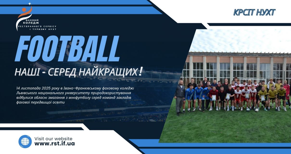 Студенти Коледжу ресторанного сервісу і туризму НУХТ вибороли ІІ місце в обласних змаганнях з мініфутболу 14 листопада 2025 року на базі Івано-Франківського фахового коледжу Львівського національного університету природокористування відбулися обласні змагання з мініфутболу серед команд закладів фахової передвищої освіти області. Команда нашого коледжу продемонструвала високий рівень гри, витримку та справжній спортивний характер, виборовши заслужене друге […]