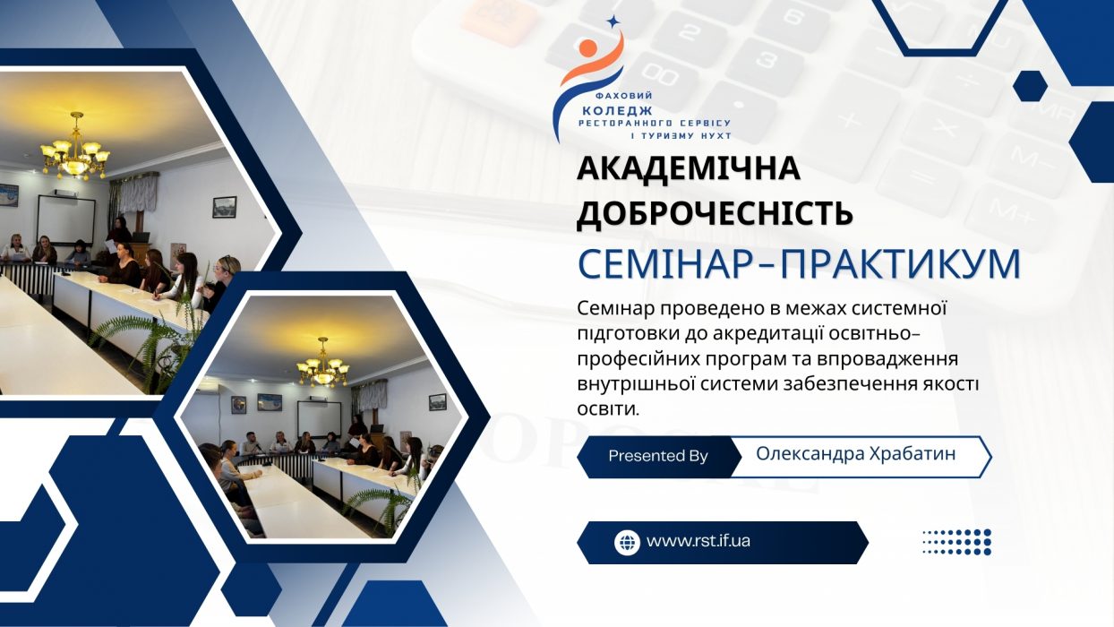 Семінар проведено в межах системної підготовки до акредитації освітньо-професійних програм та впровадження внутрішньої системи забезпечення якості освіти. Модератором зустрічі виступила заступник директора з навчальної роботи, гарант ОПП «Маркетинг» Олександра ХРАБАТИН.