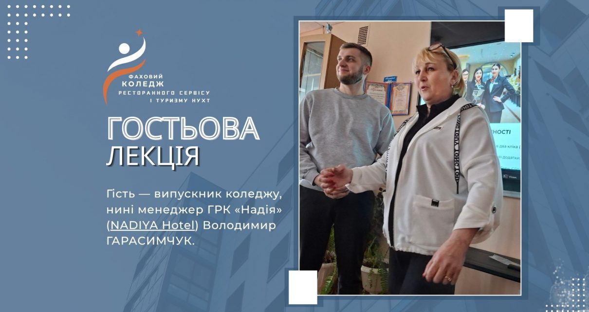 Маркетинг лідера ринку: як ГРК «Надія» формує стандарти гостинності У ВСП «Івано-Франківський фаховий коледж ресторанного сервісу і туризму НУХТ» відбулося відкрите заняття у форматі гостьової лекції, яке вийшло далеко за межі традиційного навчального процесу. До студентів групи ГО-10 (спеціальність «Готельно-ресторанна справа») завітав випускник коледжу, нині менеджер готельно-ресторанного комплексу «Надія» — Володимир Гарасимчук. Заняття проходило за […]